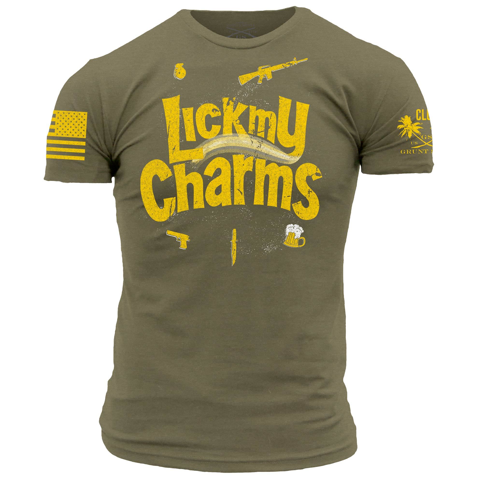 Club Grunt Style's 2019 March Club - Lick My Charms is a military green tee made with 100% Cotton.