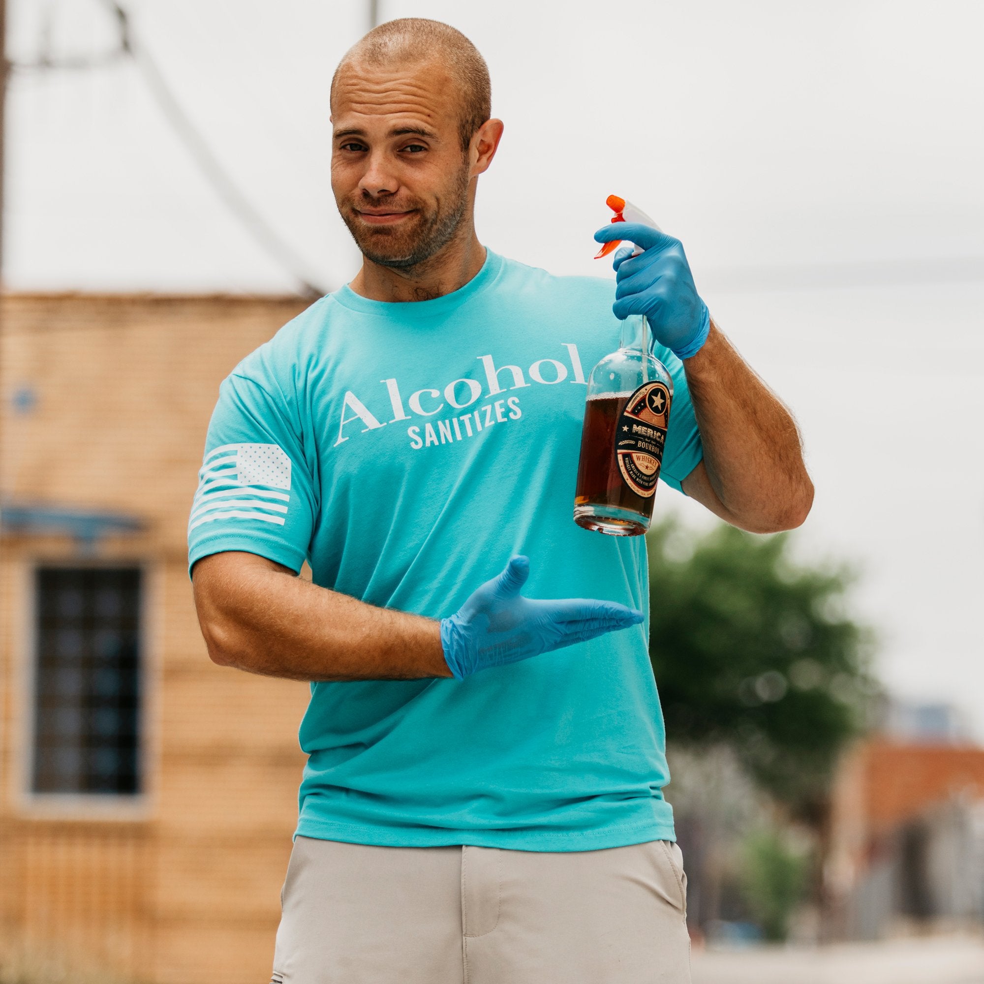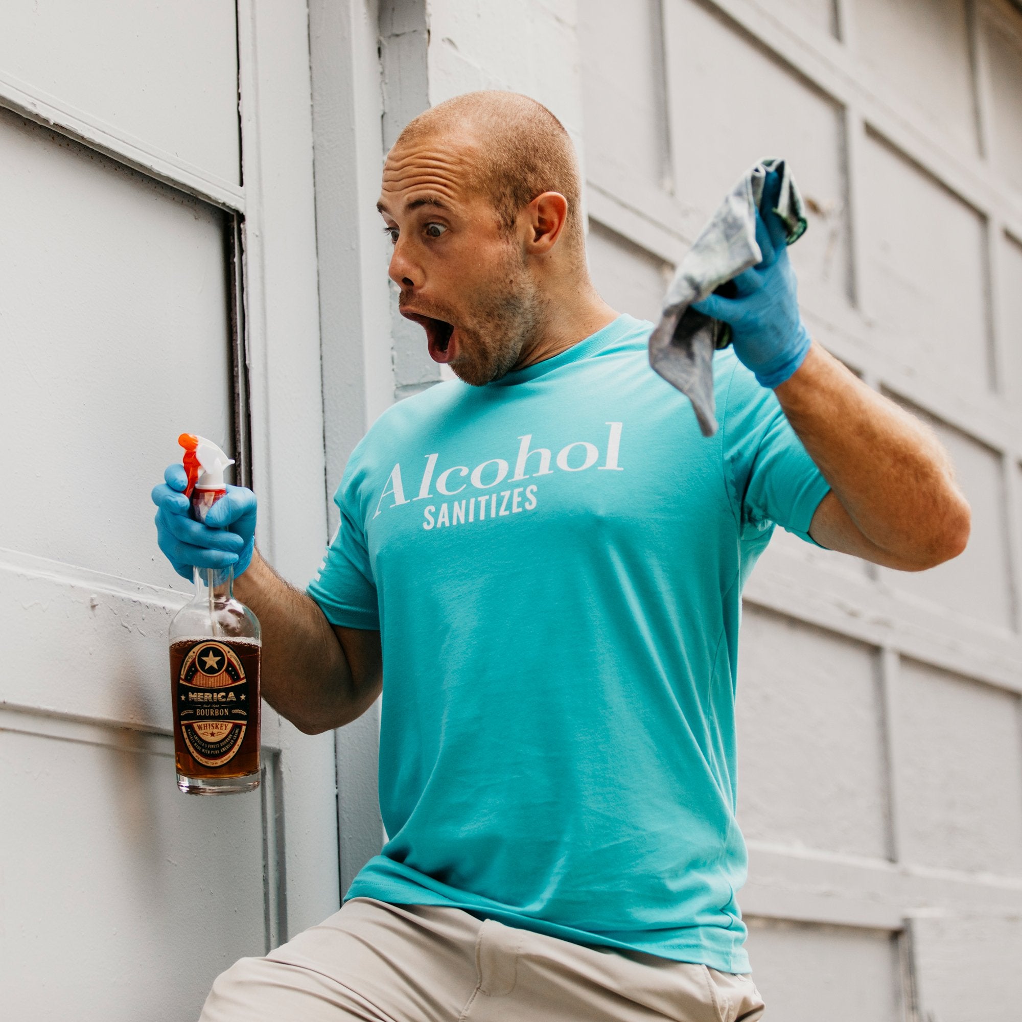 Grunt Style does not advise using booze alcohol as a sanitizer, wash your hands!