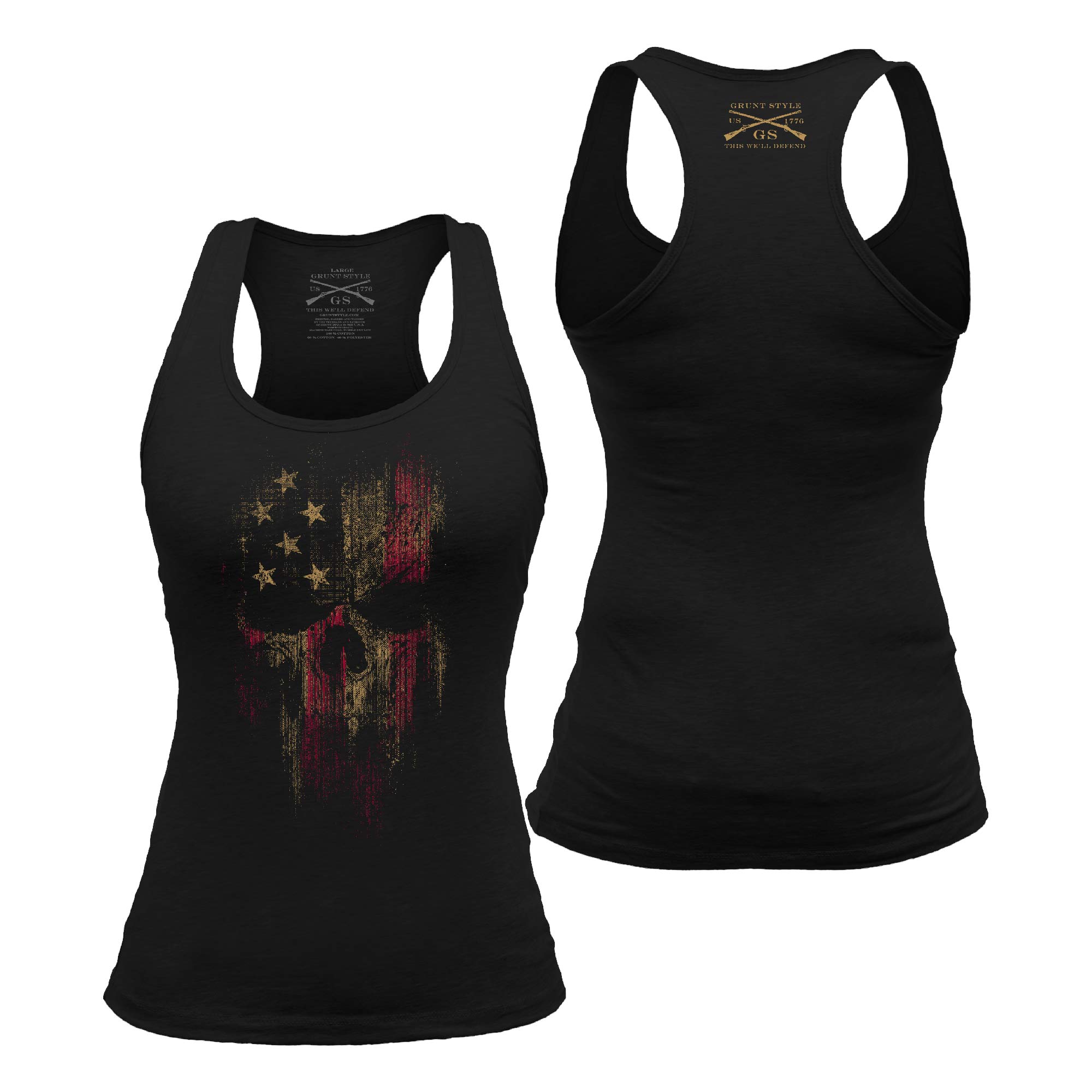 With a new conflict comes a new reaper. Re-designed and ready to work, an updated version of your favorite now on a Women's Racerback Tank.